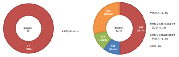 また、DX推進のための全体⽅針を策定している都道府県は全団体となっているのに対して、市区町村は862団体と全体の49.7%にとどまっています。