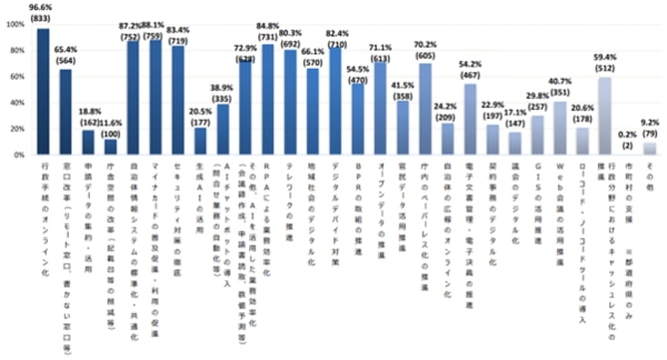 AIの活用や官民データの活用推進、電子決裁の推進などの取り組みについては、自治体によって差がある状況です。