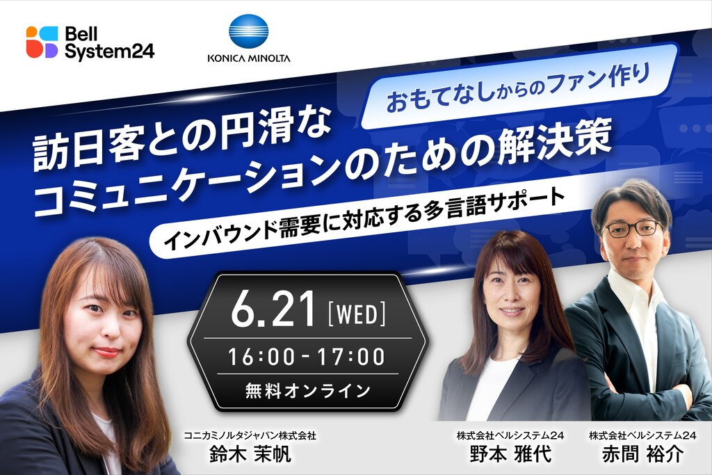 2023年6月21日(水)に、コニカミノルタ・ベルシステム24の2社がインバウンド業界向けにウェビナーを開催します。